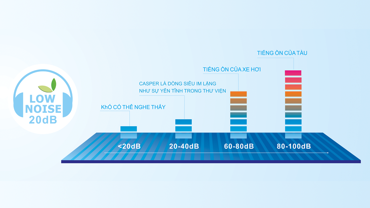 Điều hòa Casper được trăng bị động cơ quạt tiên tiến có hiệu năng cao và ít tạo tiếng ồn nhất có thể (20 dB)