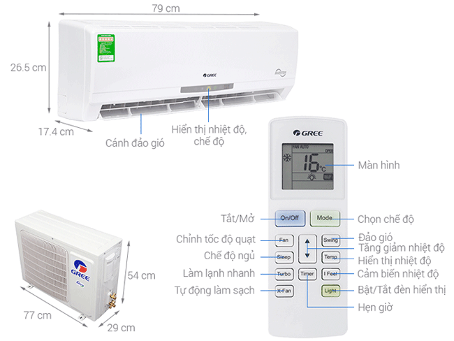 Thông số kỹ thuật máy lạnh Gree GWC18ID 2 ngựa