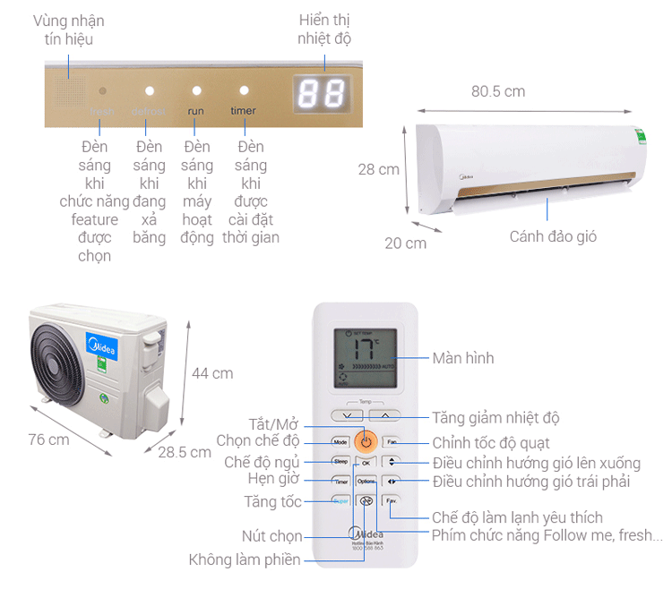 Thông số kỹ thuật máy lạnh Midea MSMA-18CR 2 ngựa