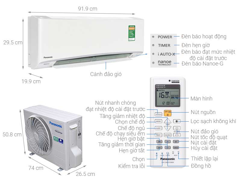 Thông số kỹ thuật máy lạnh Panasonic U12XKH-8 inverter 1.5 ngựa
