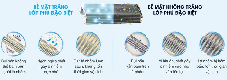 Ngăn ngừa bụi bẩn, vi khuẩn, nấm mốc bám vào bề mặt ngoài dàn lạnh giúp máy hoạt động tối ưu hơn, luồng không khí trong lành và bền hơn