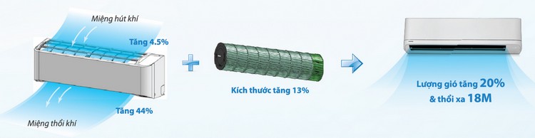 Hệ thống tạo luồng gió cực mạnh, cánh đảo gió dài và góc thổi rộng