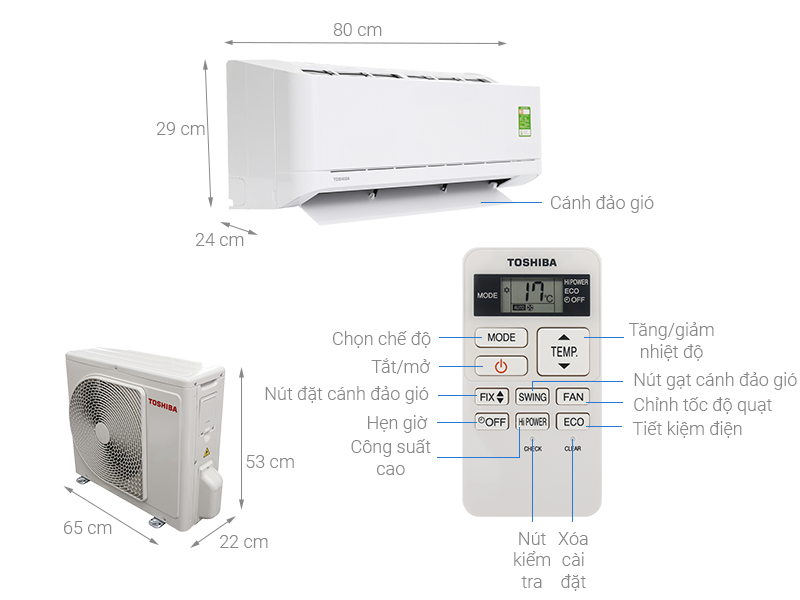 Thiết bị ngoài trời (CxRxS) (mm): 550x780x290